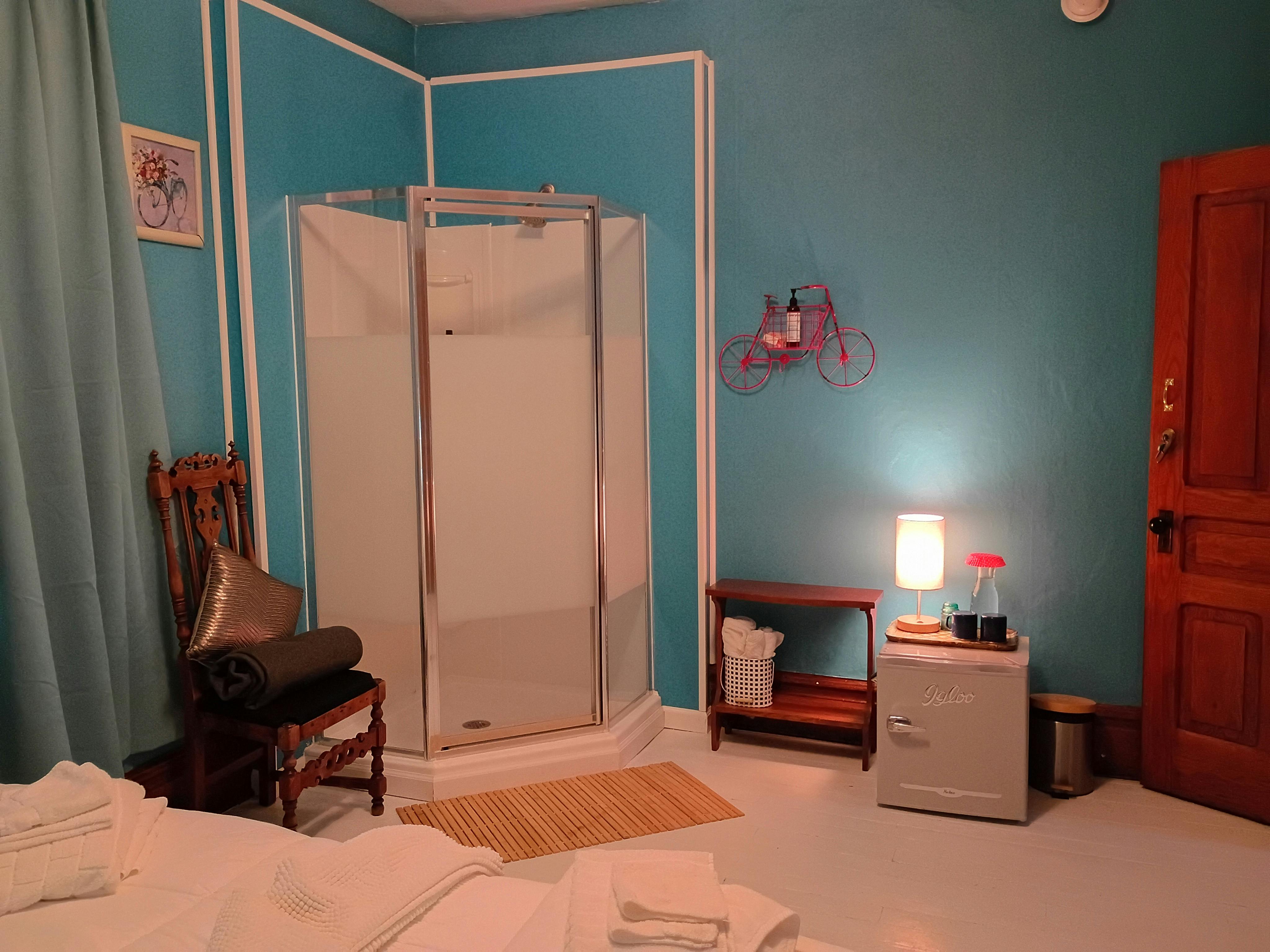 This room has a private attached bathroom.